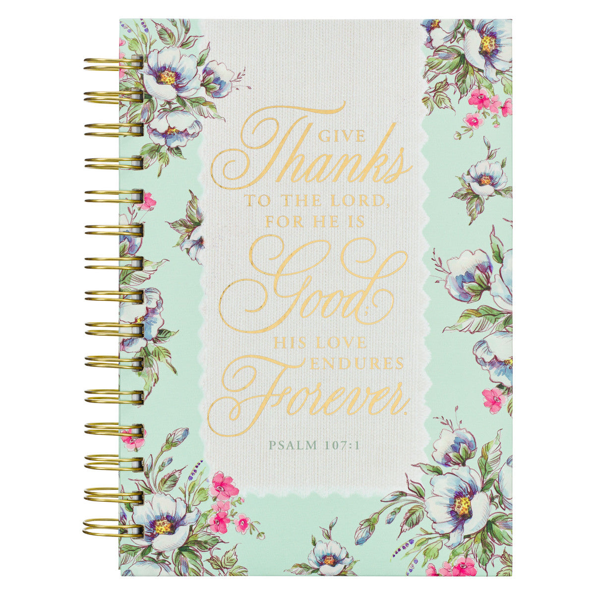 Give Thanks to the Lord White Lace Wirebound Journal - Psalm 107:1